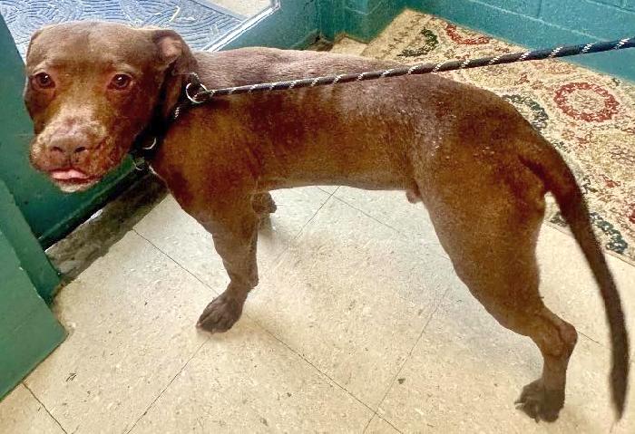 Notes: Bruno is a neutered male Pit Bull mix, approximately 3 years old. He was found as a stray on 11/9/25 and brought in by an Ironton Police officer Bruno has made a lasting impression on everyone he meets. Bruno spent time riding in the Police cruiser and the officer considered adopting Bruno himself due to his likable nature.